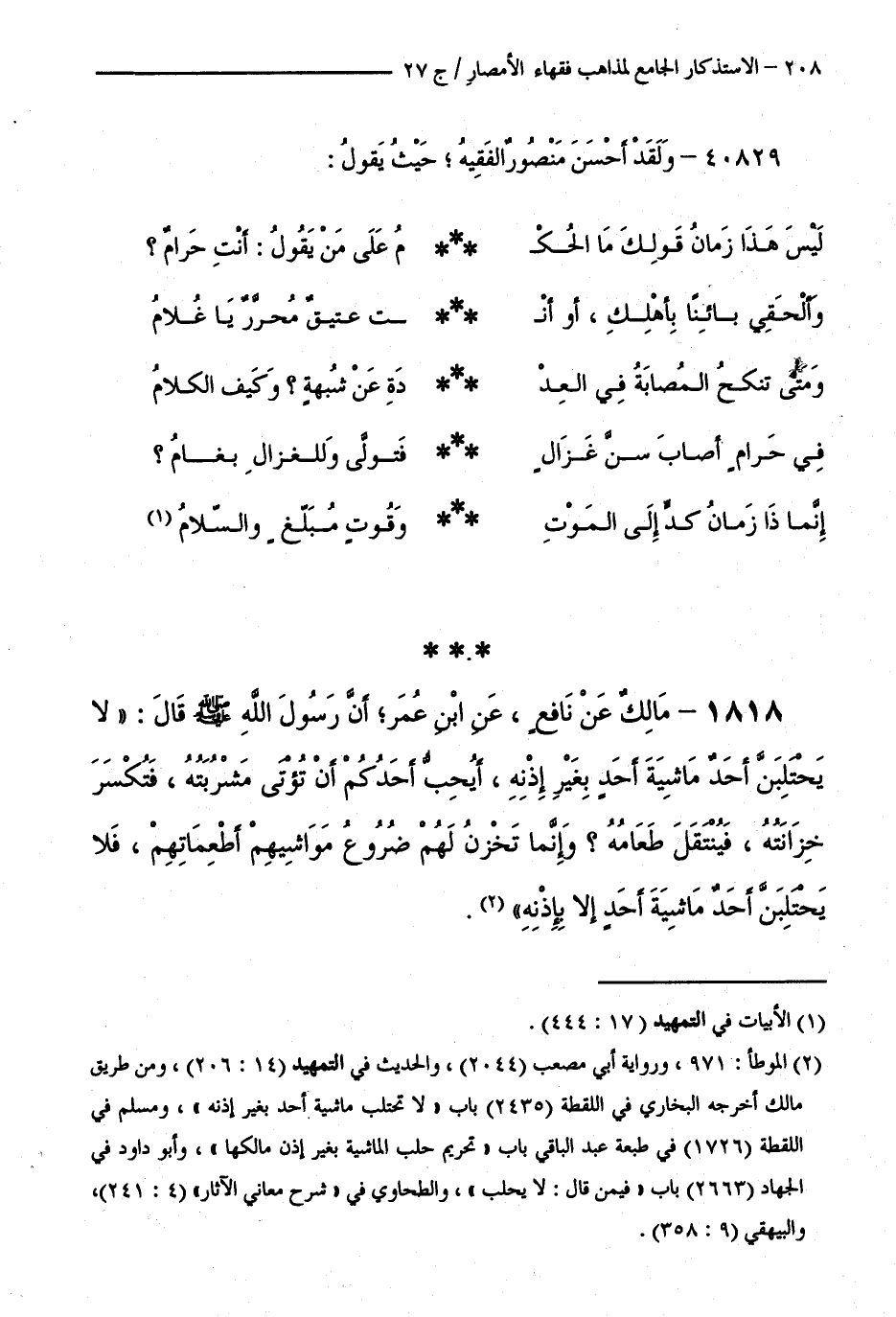 كتاب الاستذكار الجامع لمذاهب فقهاء الأمصار - ت: قلعجي (اسم الجزء: 27)