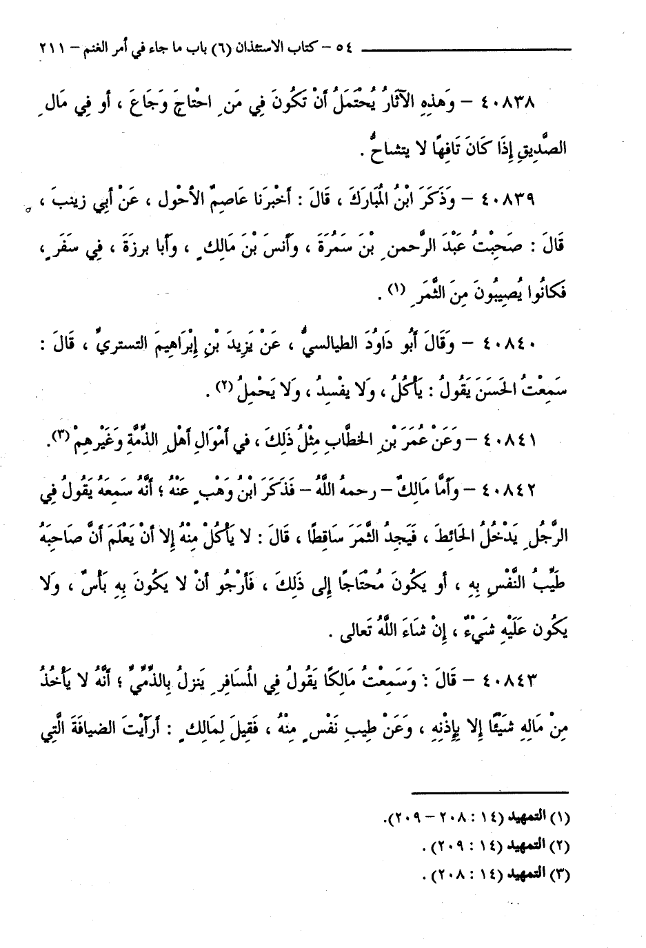 40839 - وَذَكَرَ ابْنُ الْمُبَارَكِ، قَالَ: أَخْبَرَنَا عَاصِمٌ الْأَحْوَلُ، عَنْ أَبِي زَيْنَبَ، قَالَ: صَحِبْتُ عَبْدَ الرَّحْمَنِ بْنَ سَمُرَةَ، وَأَنَسَ بْنَ مَالِكٍ، وَأَبَا بَرْزَةَ، فِي سَفَرٍ، فَكَانُوا يُصِيبُونَ مِنَ الثَّمَرِ.