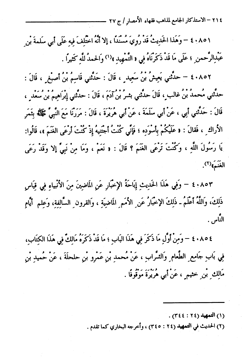كتاب الاستذكار الجامع لمذاهب فقهاء الأمصار - ت: قلعجي (اسم الجزء: 27)