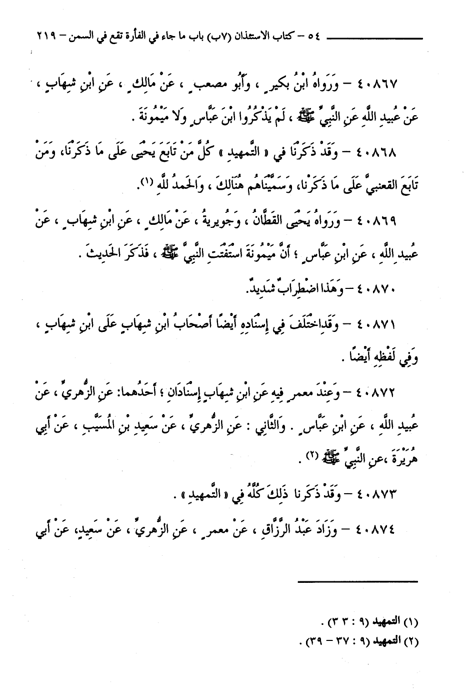 40871 - وَقَدِ اخْتَلَفَ فِي إِسْنَادِهِ أَيْضًا أَصْحَابُ ابْنِ شِهَابٍ عَلَى ابْنِ شِهَابٍ، وَفِي لَفْظِهِ أَيْضًا.