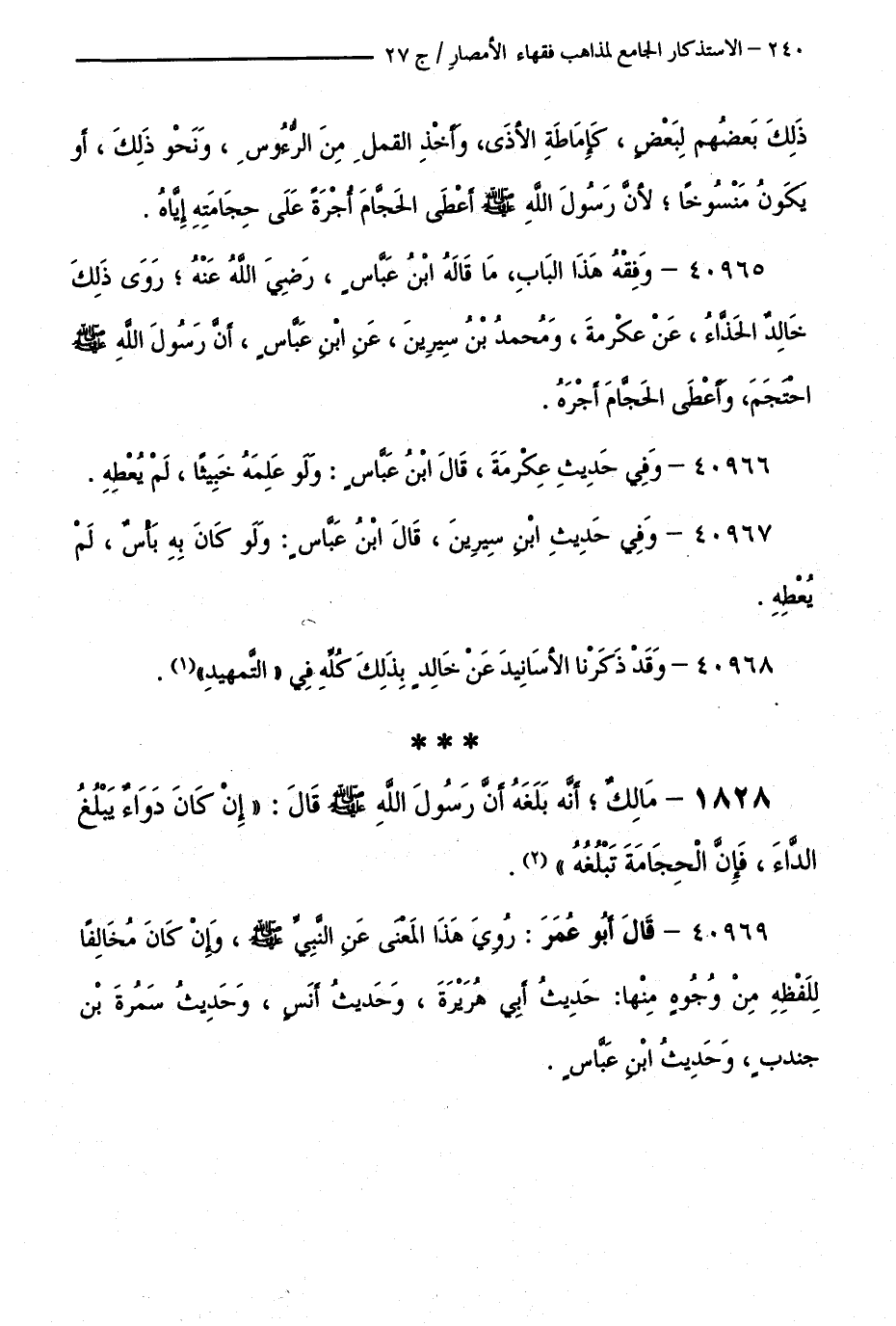 كتاب الاستذكار الجامع لمذاهب فقهاء الأمصار - ت: قلعجي (اسم الجزء: 27)