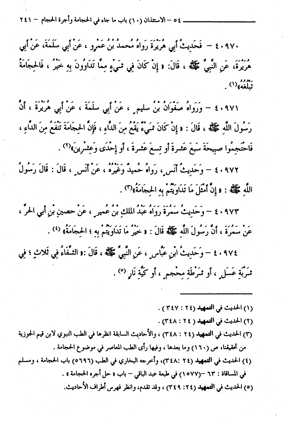 40970 - فَحَدِيثُ أَبِي هُرَيْرَةَ رَوَاهُ مُحَمَّدُ بْنُ عَمْرٍو، عَنْ أَبِي سَلَمَةَ، عَنْ أَبِي هُرَيْرَةَ، عَنِ النَّبِيِّ - صَلَّى اللَّهُ عَلَيْهِ وَسَلَّمَ -، قَالَ: "إِنْ كَانَ فِي شَيْءٍ مِمَّا تَدَاوُونَ بِهِ خَيْرٌ، فَالْحِجَامَةُ تَبْلُغُهُ ".