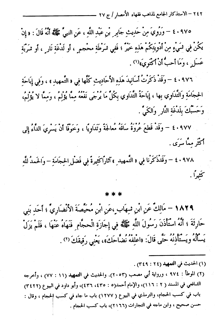 كتاب الاستذكار الجامع لمذاهب فقهاء الأمصار - ت: قلعجي (اسم الجزء: 27)