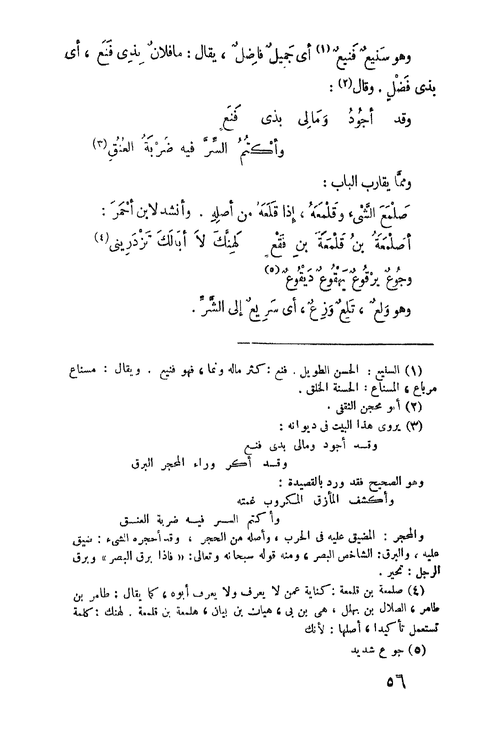 (وقد أجود ومالى بذي فَنَعٍ ... وأكتُمُ السرَّ فيه ضَرْبَهُ العُنُقِ)