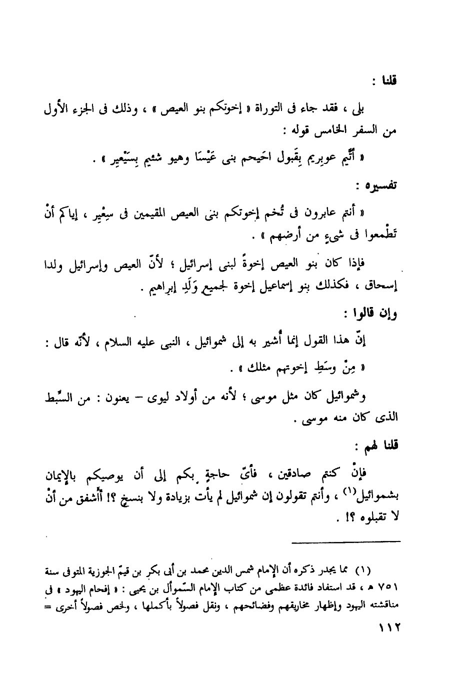 فَإِذا كَانَ بَنو الْعيص إخْوَة لبني إِسْرَائِيل لِأَن الْعيص وَإِسْرَائِيل ولدا إِسْحَاق فَكَذَلِك بَنو إِسْمَاعِيل إخْوَة لجَمِيع ولد إِبْرَهِيمُ