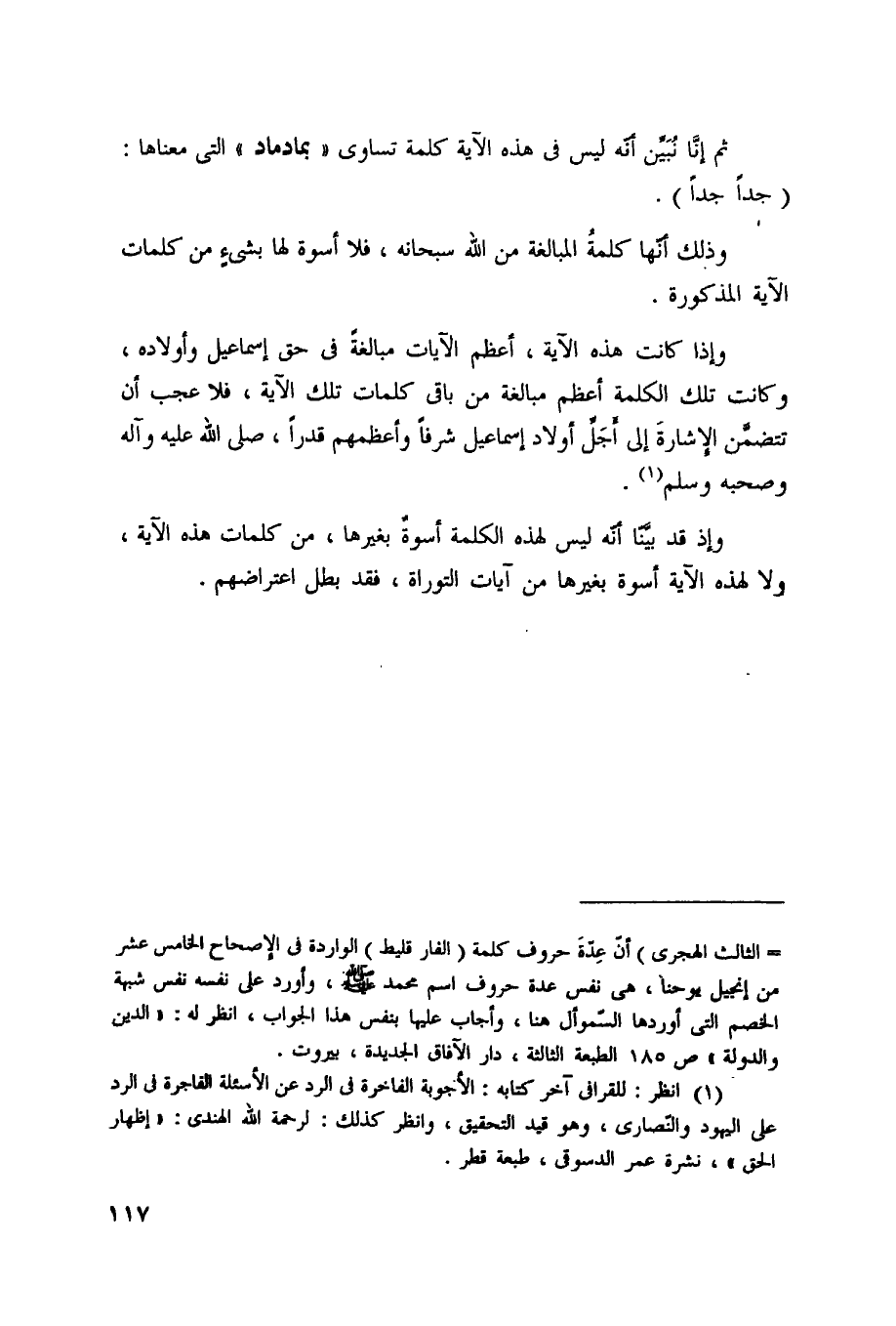 وَإِذ قد بَينا أَنه لَيْسَ لهَذِهِ الْكَلِمَة أُسْوَة بغَيْرهَا من كَلِمَات هَذِه الْآيَة وَلَا لهَذِهِ الْآيَة أُسْوَة بغَيْرهَا من آيَات التَّوْرَاة فقد بَطل اعتراضهم