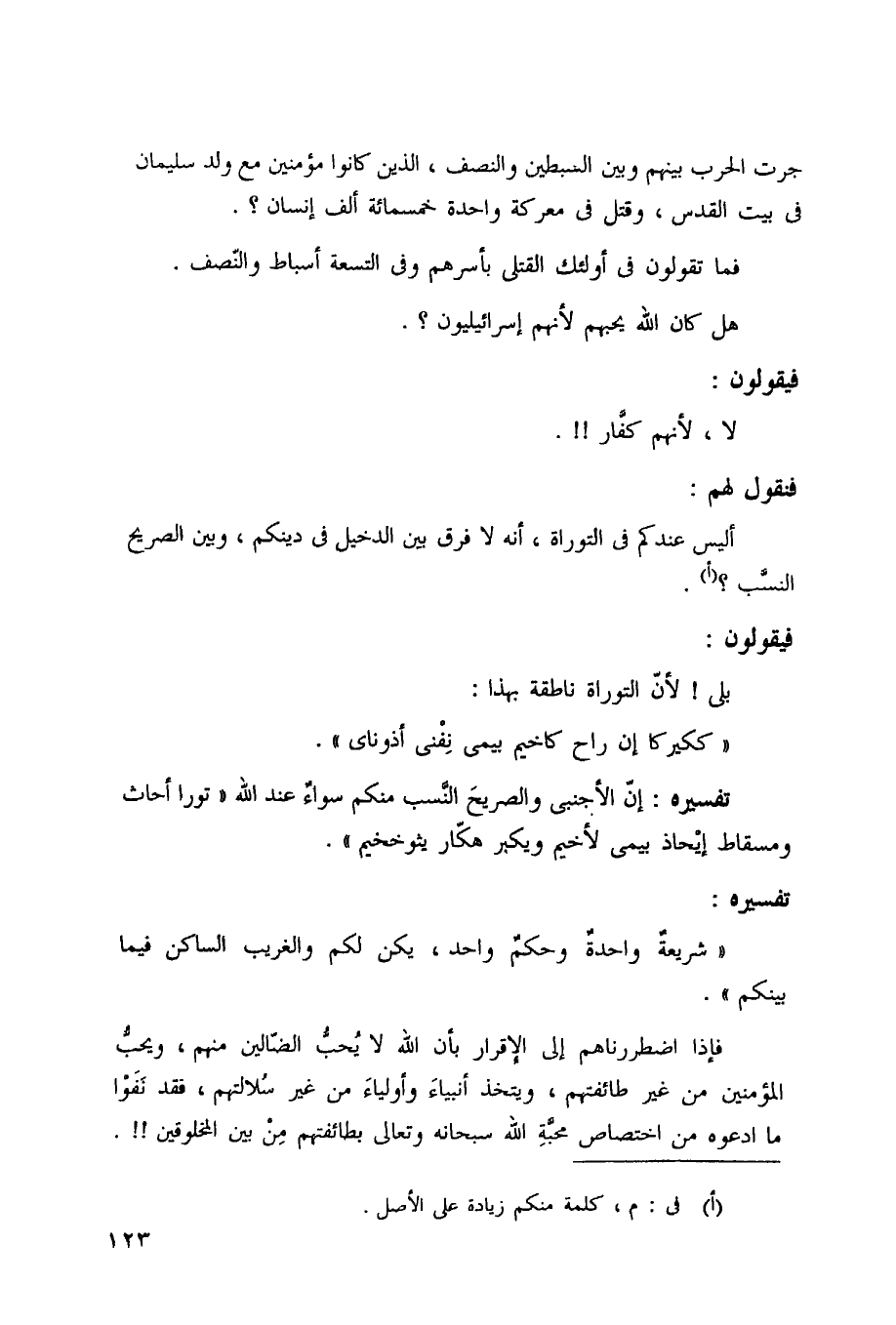 أَلَيْسَ عنْدكُمْ فِي التَّوْرَاة انه لَا فرق بَين الدخيل فِي دينكُمْ وَبَين الصَّرِيح النّسَب