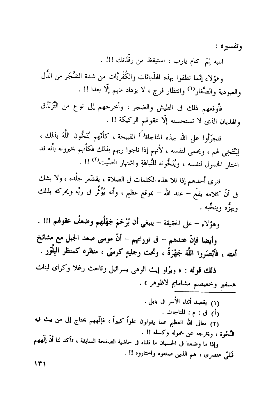 وَهَؤُلَاء إِنَّمَا نطقوا بِهَذِهِ الهذايانات والكفريات من شدَّة الضجر من الذل والعبودية وَالصغَار وانتظار فرج لَا يزْدَاد مِنْهُم إِلَّا بعدا