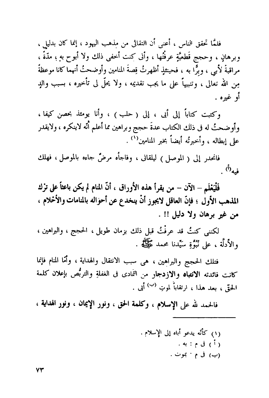 فَليعلم الْآن من يقْرَأ هَذِه الأوراق أَن الْمَنَام لم يكن باعثا على ترك الْمَذْهَب الأول فَأن الْعَاقِل لَا يجوز أَن ينخدع عَن أَحْوَاله بالمنامات والأحلام من غير برهَان وَلَا دَلِيل