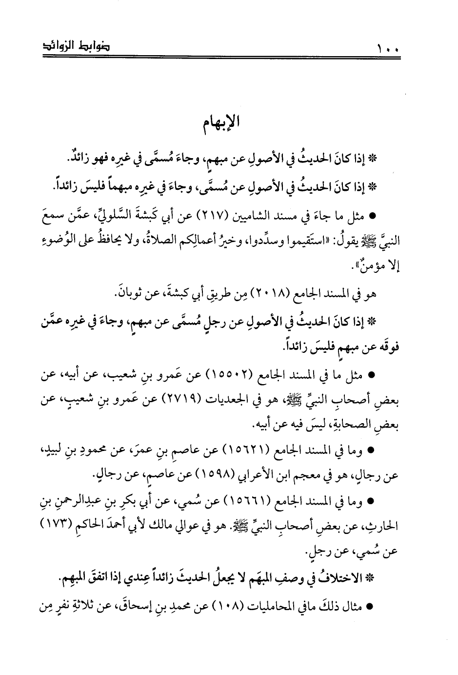 * إذا كانَ الحديثُ في الأصولِ عن مبهمٍ، وجاءَ مُسمَّى في غيرِه فهو زائدٌ.