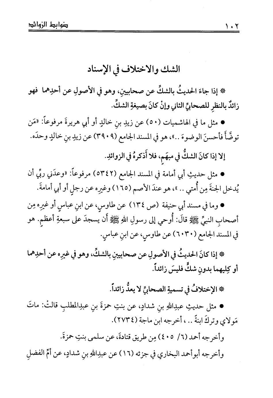 إلا إذا كانَ الشكُّ في مبهَمٍ، فلا أَذكرهُ في الزوائدِ.