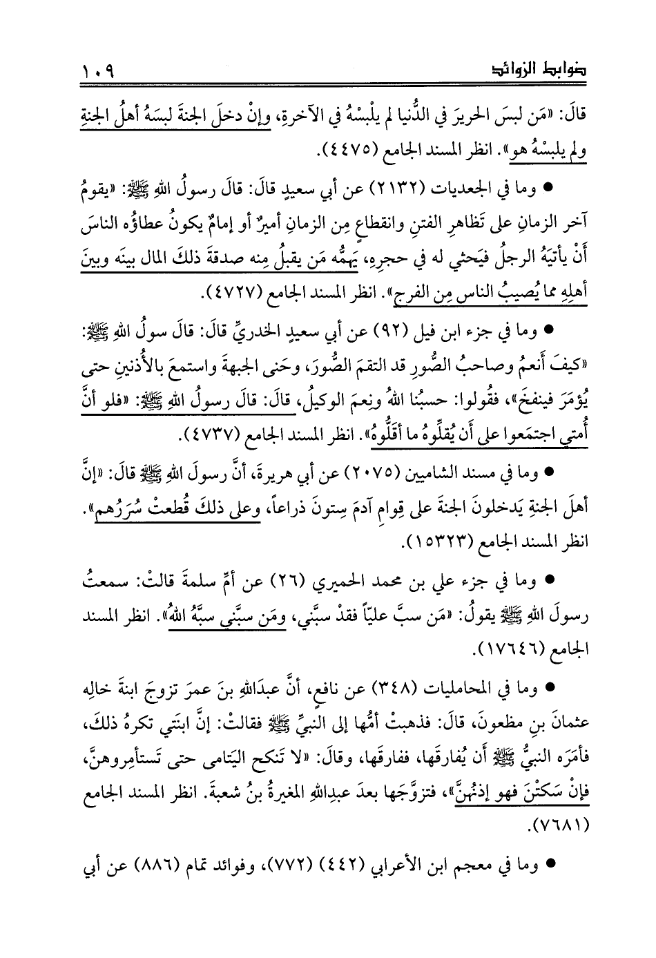 * وما في جزء علي بن محمد الحميري (26) عن أمِّ سلمةَ قالتْ: سمعتُ رسولَ اللهِ - صلى الله عليه وسلم - يقولُ: «مَن سبَّ عليّاً فقدْ سبَّني، ومَن سبَّني سبَّهُ اللهُ». انظر المسند الجامع (17646).