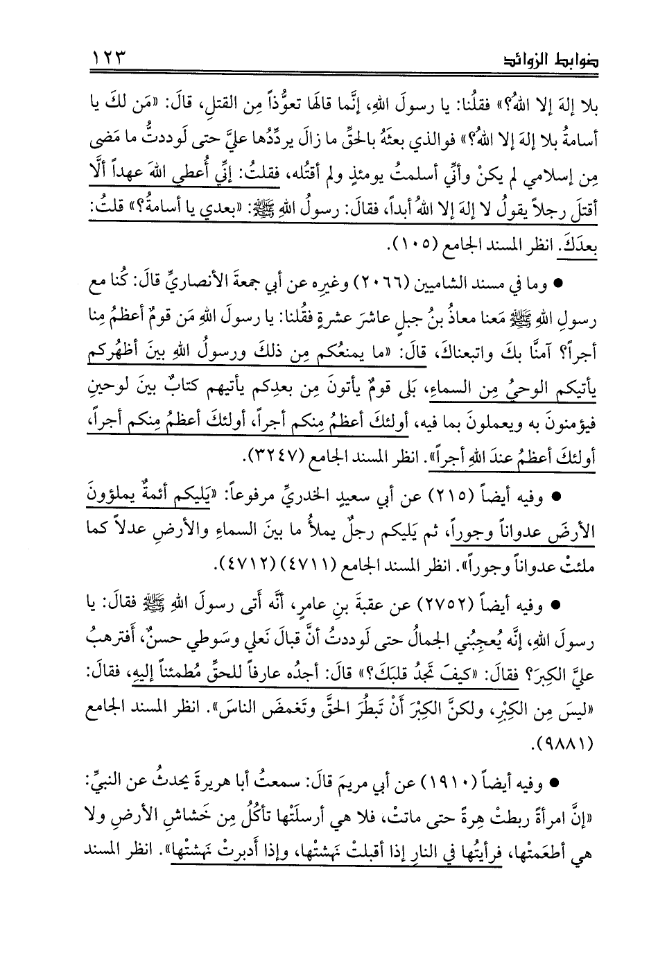 بلا إلهَ إلا اللهُ؟» فقلُنا: يا رسولَ اللهِ، إنَّما قالَها تعوُّذاً مِن القتلِ، قالَ: «مَن لكَ يا أسامةُ بلا إلهَ إلا اللهُ؟» فوالذي بعثَهُ بالحقِّ ما زالَ يردِّدُها عليَّ حتى لَوددتُّ ما مَضى مِن إسلامي لم يكنْ وأنِّي أسلمتُ يومئذٍ ولم أقتُله، فقلتُ: إنِّي أُعطي اللهَ عهداً ألَّا أقتلَ رجلاً يقولُ لا إلهَ إلا اللهُ أبداً، فقالَ: رسولُ اللهِ - صلى الله عليه وسلم -: «بعدي يا أسامةُ؟» قلتُ: بعدَكَ. انظر المسند الجامع (105).