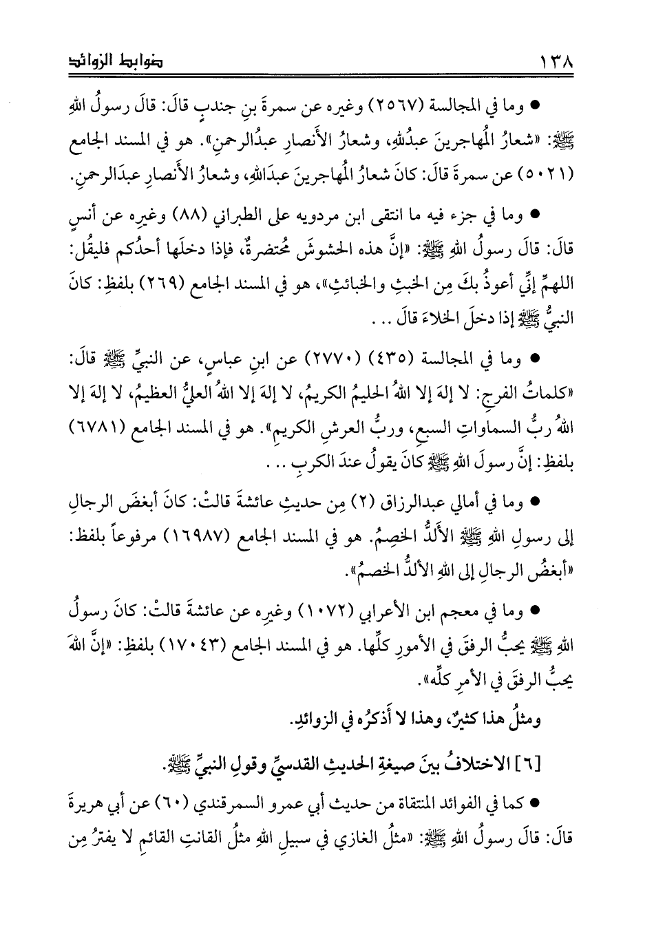ومثلُ هذا كثيرٌ، وهذا لا أَذكرُه في الزوائدِ.