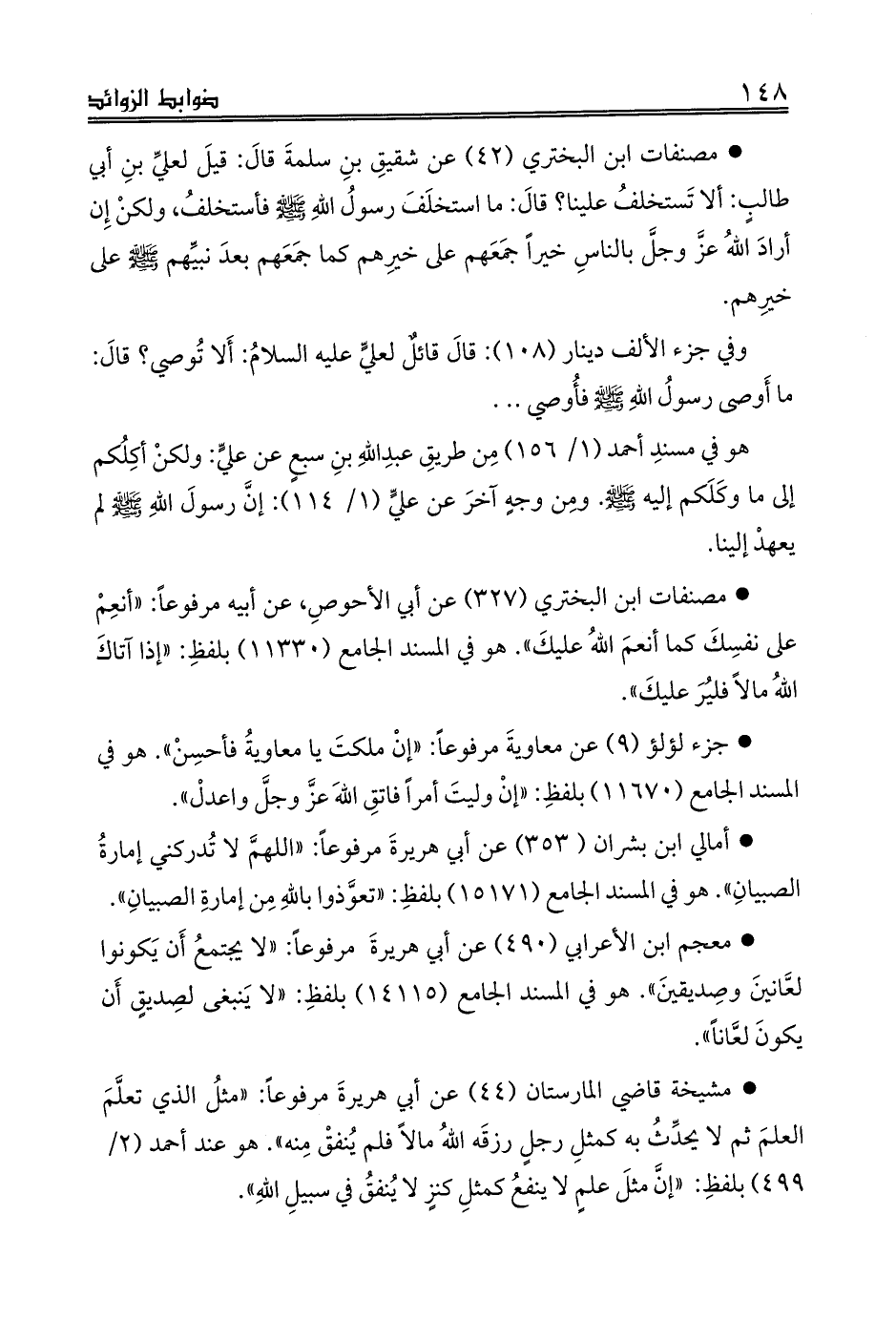 * مصنفات ابن البختري (42) عن شقيقِ بنِ سلمةَ قالَ: قيلَ لعليِّ بنِ أبي طالبٍ: ألا تَستخلفُ علينا؟ قالَ: ما استخلَفَ رسولُ اللهِ - صلى الله عليه وسلم - فأستخلفُ، ولكنْ إِن أرادَ اللهُ عزَّ وجلَّ بالناسِ خيراً جمَعَهم على خيرِهم كما جمَعَهم بعدَ نبيِّهم - صلى الله عليه وسلم - على خيرِهم.
