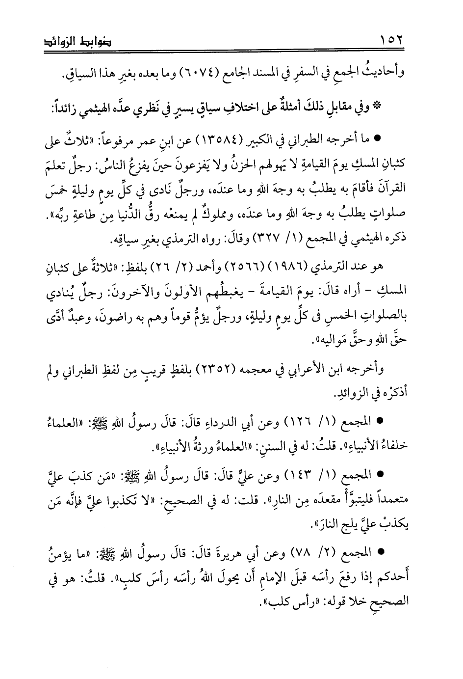 * وفي مقابلِ ذلكَ أمثلةٌ على اختلافِ سياقٍ يسيرٍ في نَظري عدَّه الهيثمي زائداً: