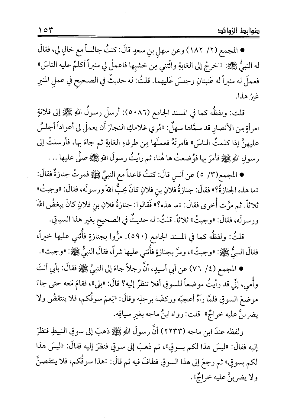 * المجمع (2/ 182) وعن سهلِ بنِ سعدٍ قالَ: كنتُ جالساً مع خالٍ لي، فقالَ له النبيُّ - صلى الله عليه وسلم -: «اخرجْ إلى الغابةِ وائْتني مِن خشبِها فاعملْ لي منبراً أكلمُ عليه الناسَ» فعملَ له منبراً له عَتبتانِ وجلسَ عَليهما. قلتُ: له حديثٌ في الصحيحِ في عملِ المنبرِ غيرُ هذا.