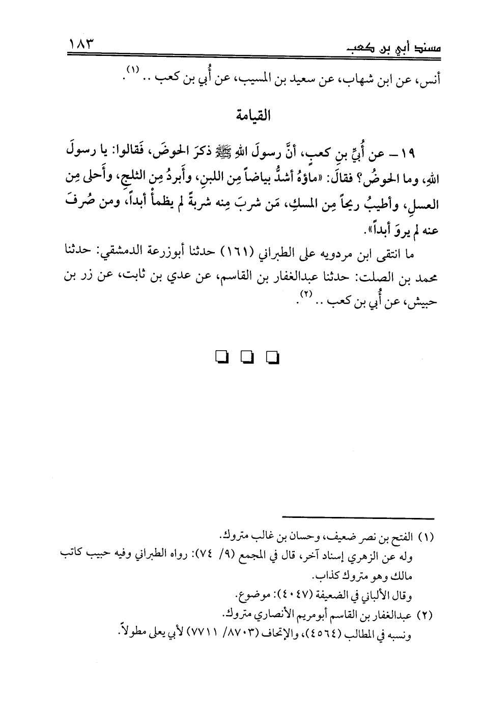 ما انتقى ابن مردويه على الطبراني (161) حدثنا أبوزرعة الدمشقي: حدثنا محمد بن الصلت: حدثنا عبدالغفار بن القاسم، عن عدي بن ثابت، عن زر بن حبيش، عن أُبي بن كعب .. (¬1).