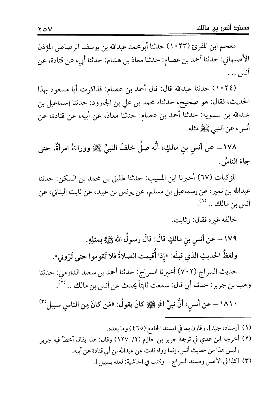 (¬2) أخرجه ابن عدي في ترجمة جرير بن حازم (2/ 127) وقال: هذا يقال أخطأ فيه جرير وليس هذا من حديث أنس، إنما رواه ثابت عن عبدالله بن أبي قتادة عن أبيه.