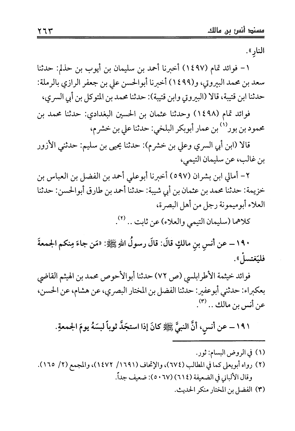فوائد خيثمة الأطرابلسي (ص 72) حدثنا أبوالأحوص محمد بن الهيثم القاضي بعكبراء: حدثني أبوعفير: حدثنا الفضل بن المختار البصري، عن هشام، عن الحسن، عن أنس بن مالك .. (¬3).