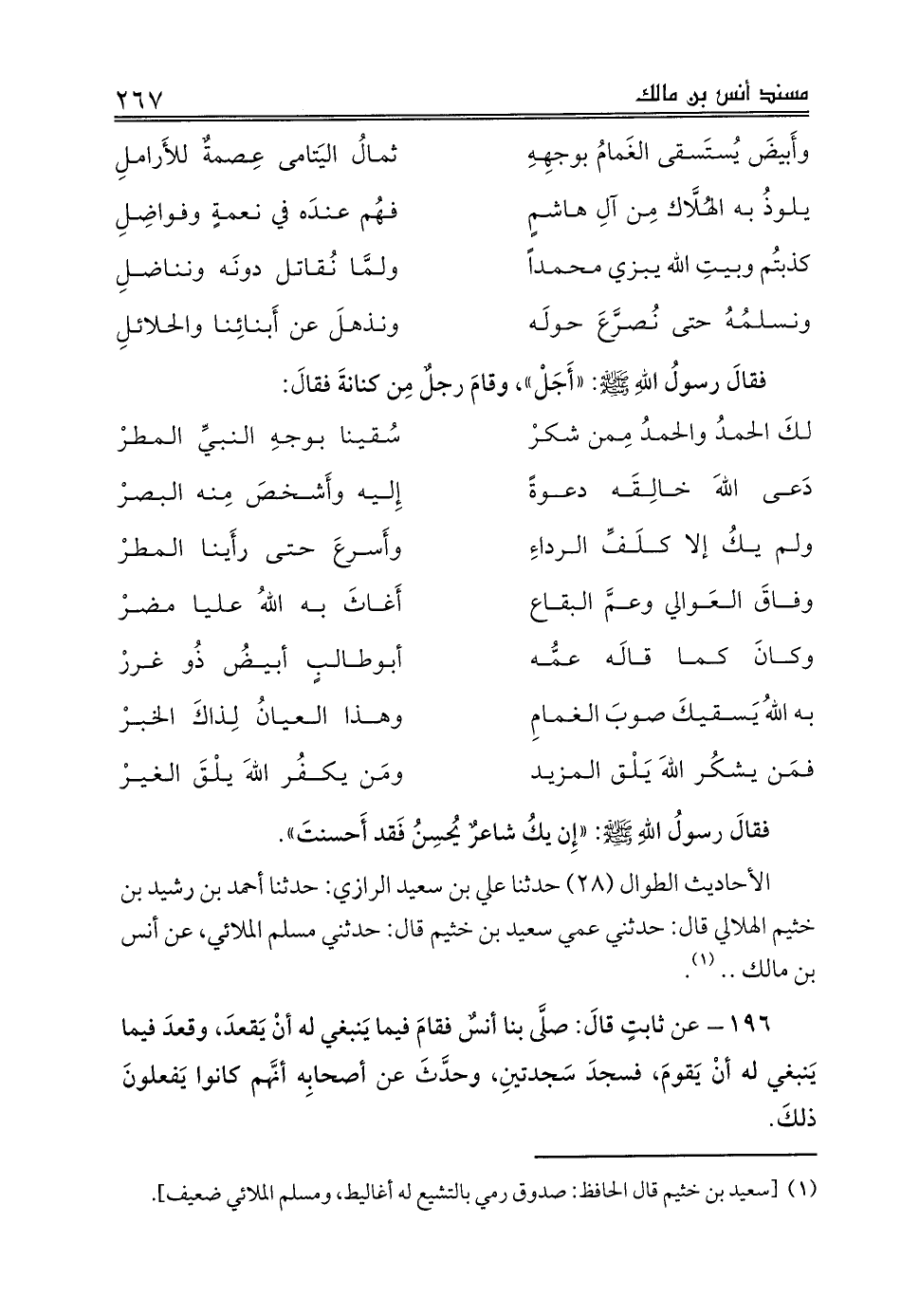 الأحاديث الطوال (28) حدثنا علي بن سعيد الرازي: حدثنا أحمد بن رشيد بن خثيم الهلالي قال: حدثني عمي سعيد بن خثيم قال: حدثني مسلم الملائي، عن أنس بن مالك .. (¬1).