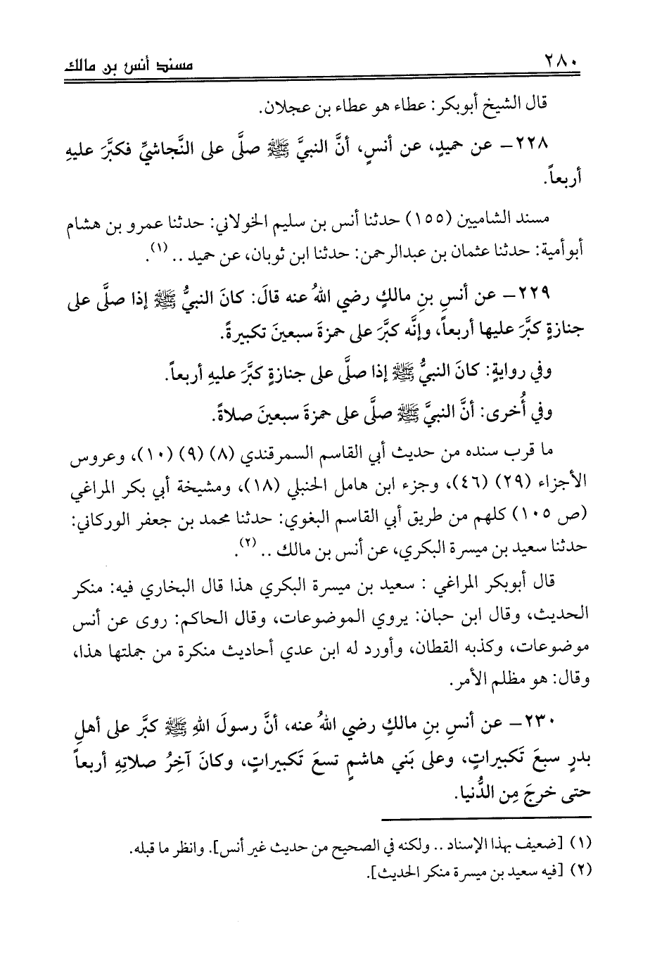 229 - عن أنسِ بنِ مالكٍ رضي اللهُ عنه قالَ: كانَ النبيُّ صلى الله عليه وسلم إذا صلَّى على جنازةٍ كبَّرَ عليها أربعاً، وإنَّه كبَّرَ على حمزةَ سبعينَ تكبيرةً.