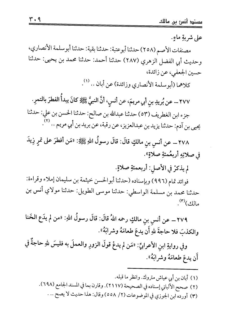 (¬2) صحح الألباني إسناده في الصحيحة (2117). وقارن بما في المسند الجامع (698).