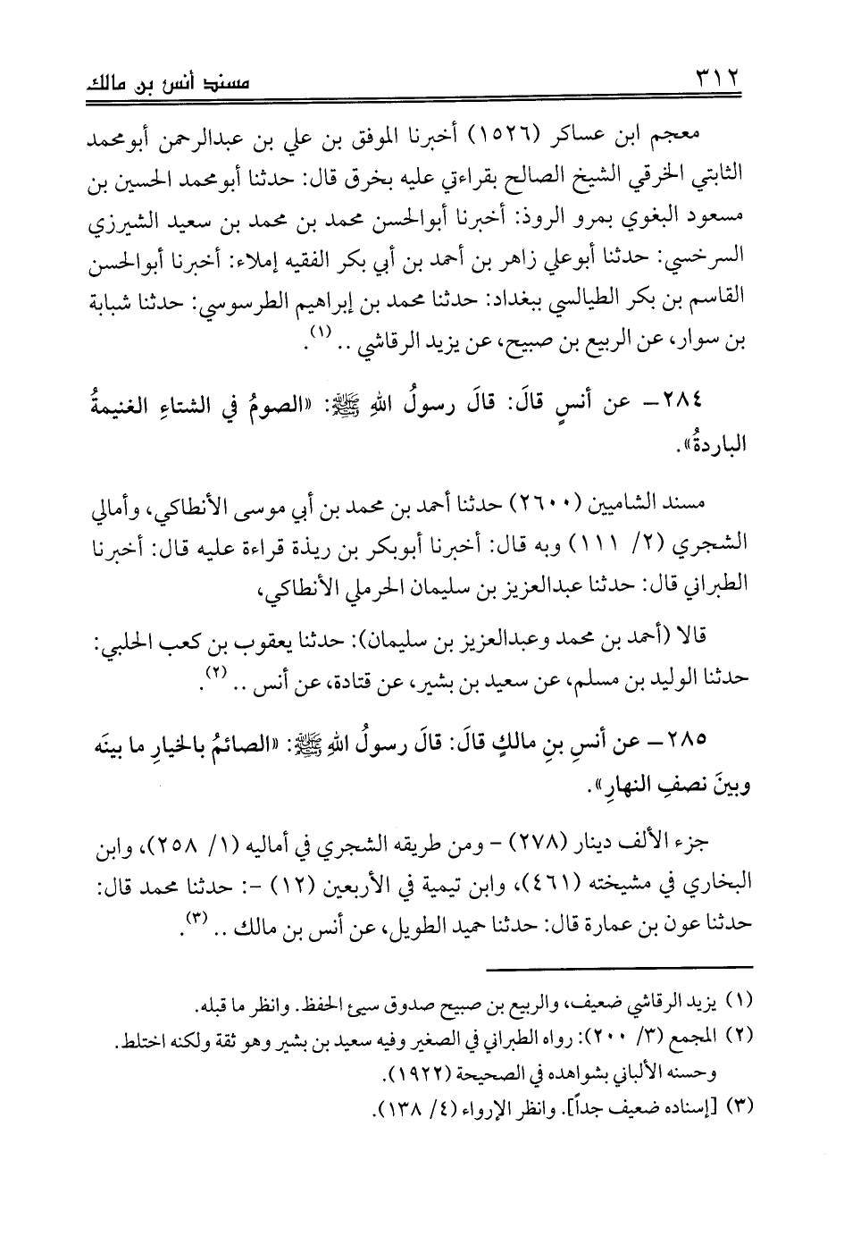 285 - عن أنسِ بنِ مالكٍ قالَ: قالَ رسولُ اللهِ صلى الله عليه وسلم: «الصائمُ بالخيارِ ما بينَه وبينَ نصفِ النهارِ».