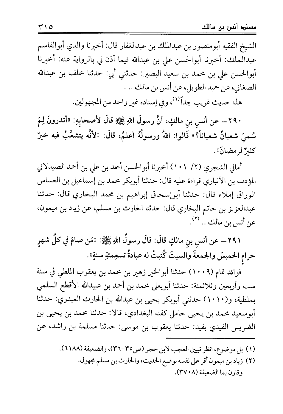 290 - عن أنسِ بنِ مالكٍ، أنَّ رسولَ اللهِ صلى الله عليه وسلم قالَ لأصحابِهِ: «أتدرونَ لِمَ سُميَ شعبانُ شعباناً؟» قَالوا: اللهُ ورسولُهُ أعلمُ، قالَ: «لأنَّه يتشعَّبُ فيه خيرٌ كثيرٌ لرمضانَ».