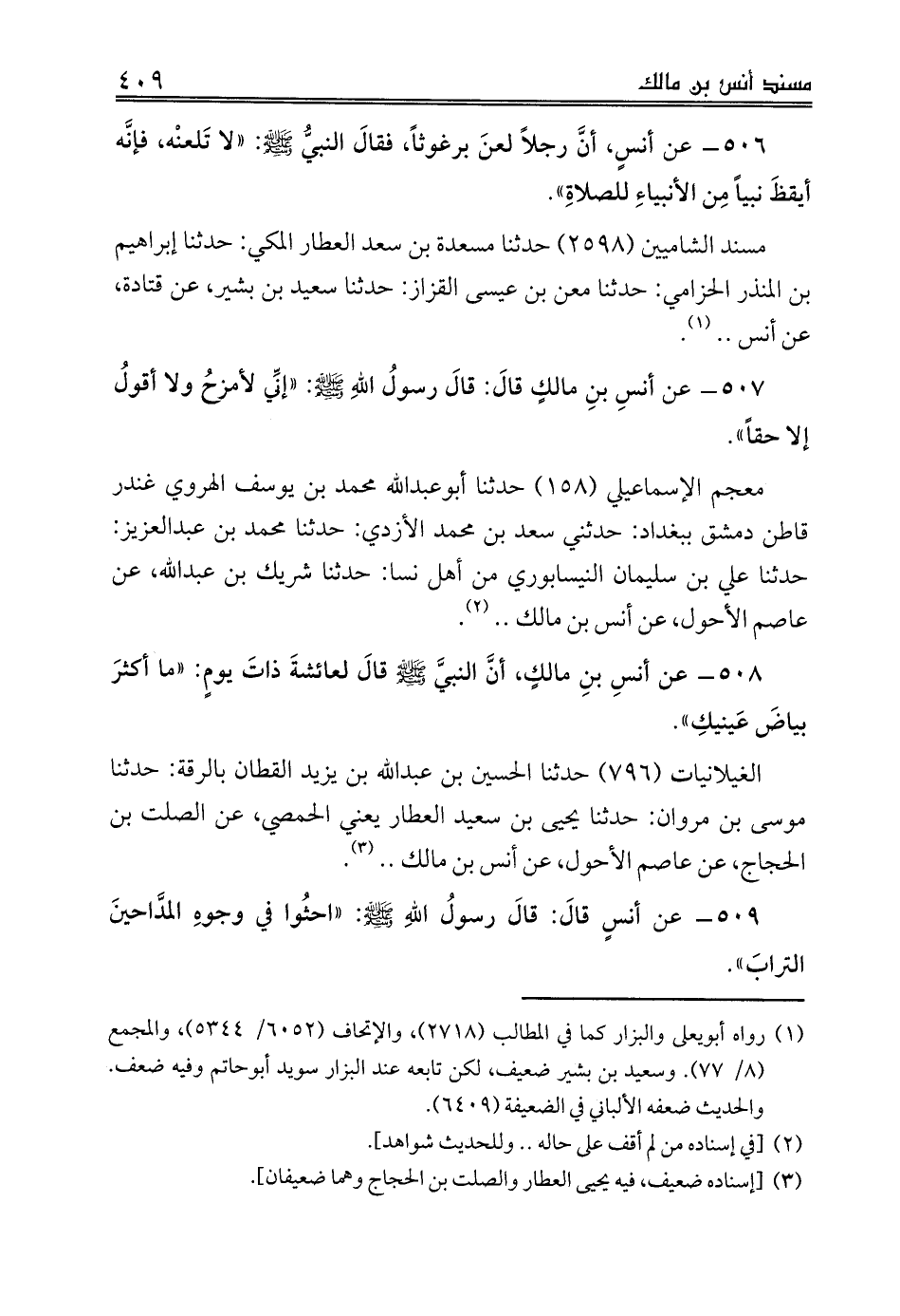 506 - عن أنسٍ، أنَّ رجلاً لعنَ برغوثاً، فقالَ النبيُّ صلى الله عليه وسلم: «لا تَلعنْه، فإنَّه أيقظَ نبياً مِن الأنبياءِ للصلاةِ».