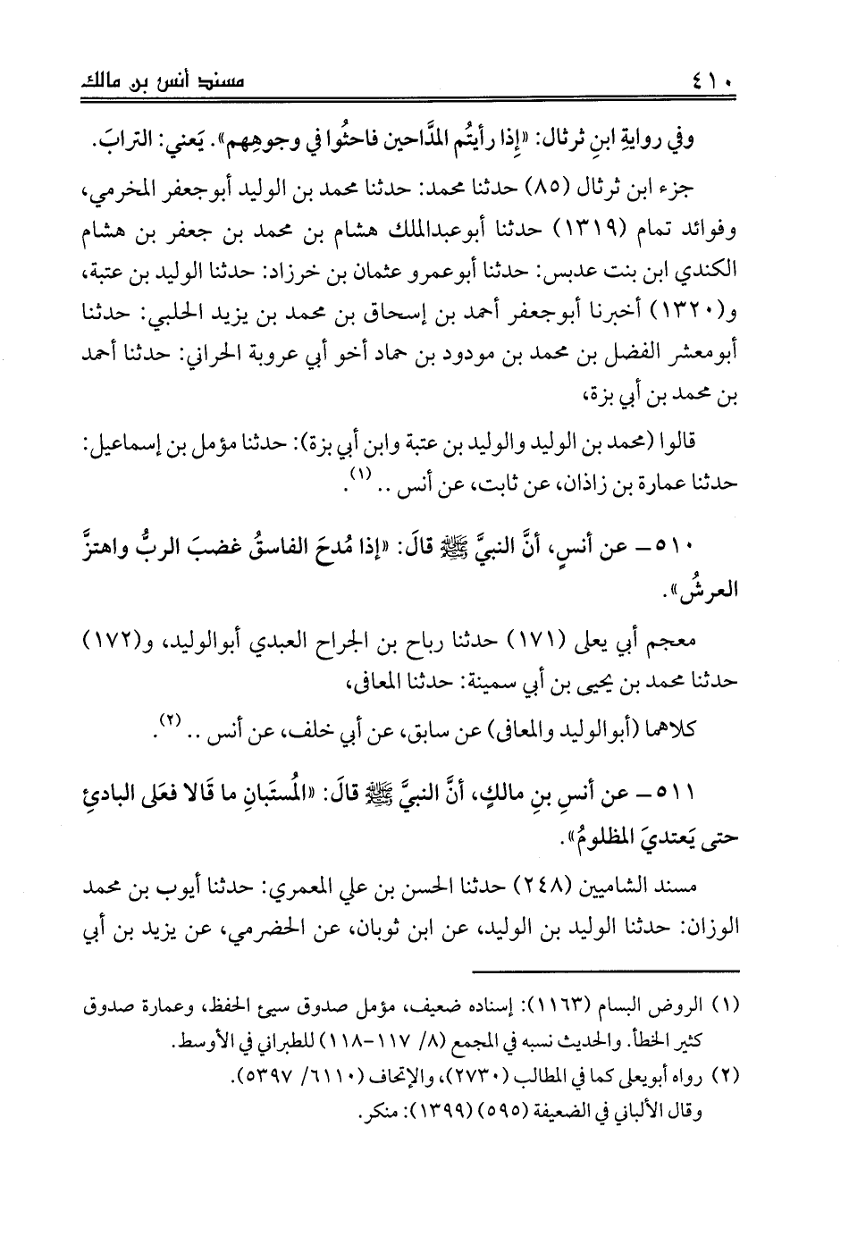 كلاهما (أبوالوليد والمعافى) عن سابق، عن أبي خلف، عن أنس .. (¬2).