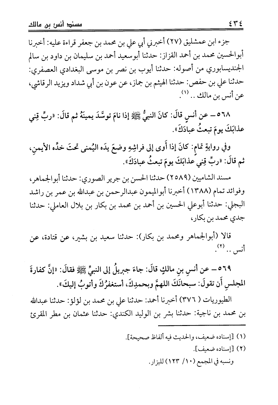 قالا (أبوالجماهر ومحمد بن بكار): حدثنا سعيد بن بشير، عن قتادة، عن أنس .. (¬2).