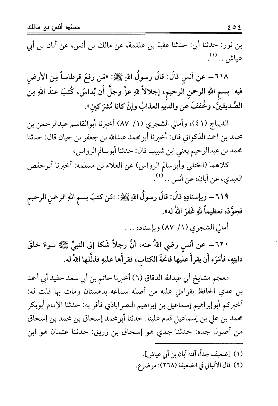 كلاهما (الختلي وأبوسالم الرواس) عن العلاء بن مسلمة: أخبرنا أبوحفص العبدي، عن أبان، عن أنس .. (¬2).