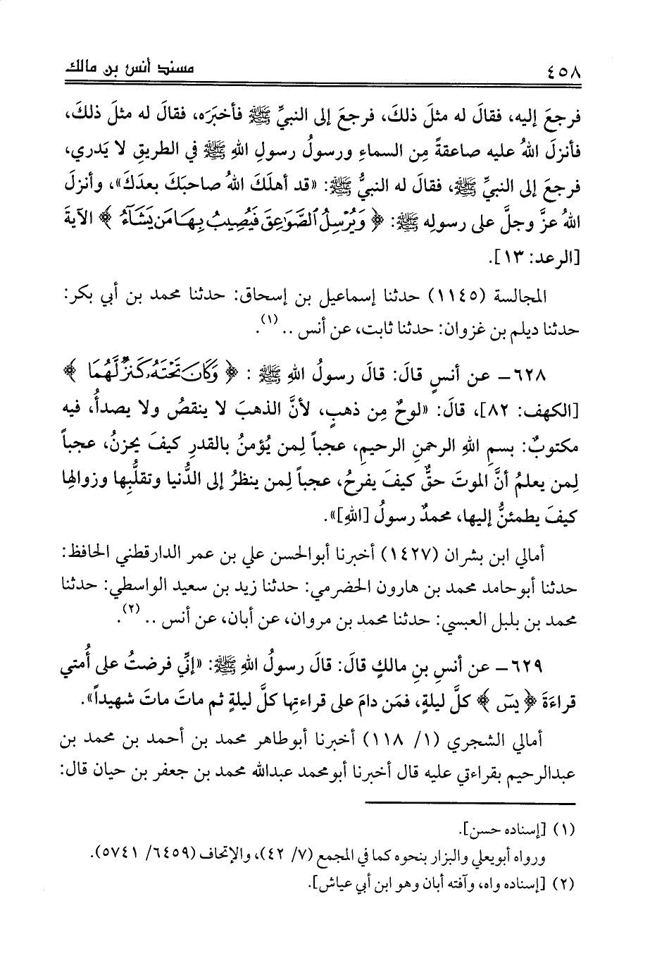 المجالسة (1145) حدثنا إسماعيل بن إسحاق: حدثنا محمد بن أبي بكر: حدثنا ديلم بن غزوان: حدثنا ثابت، عن أنس .. (¬1).