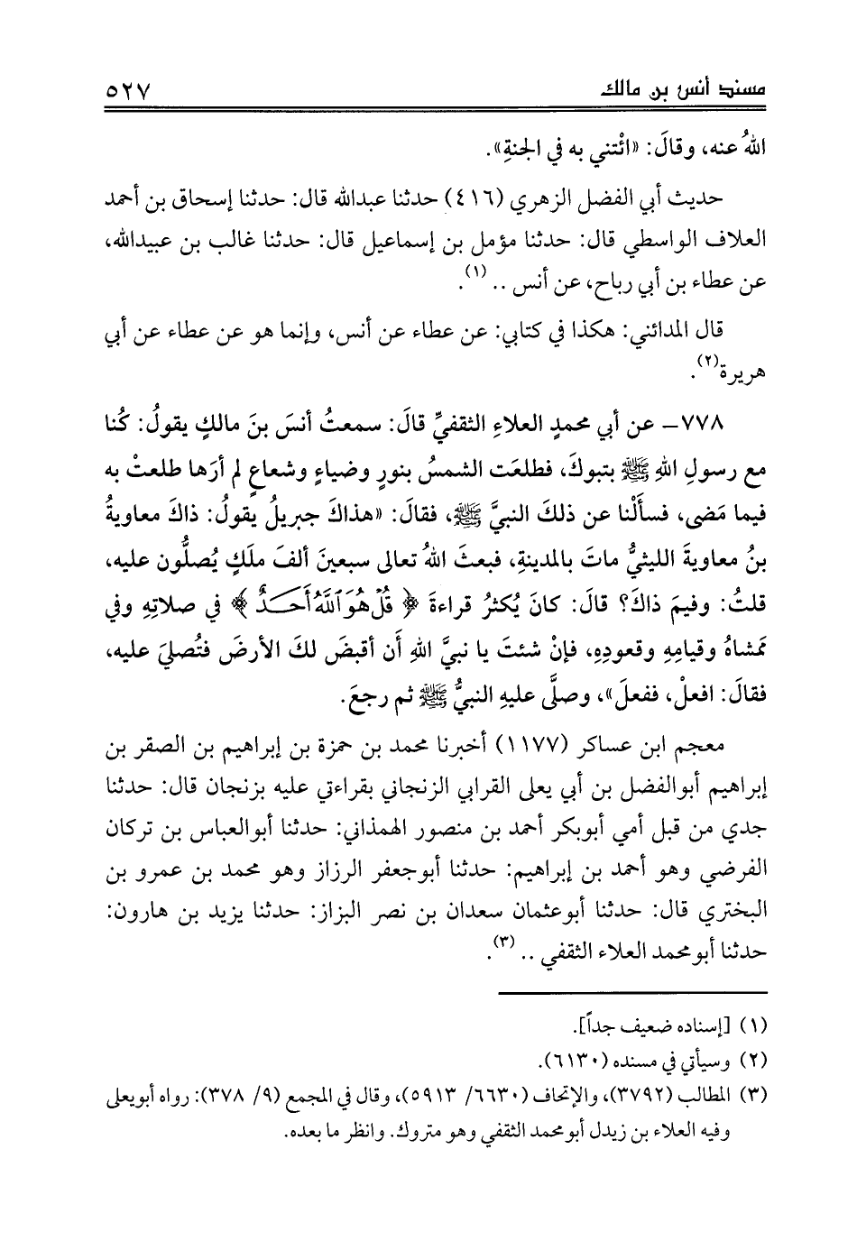 (¬3) المطالب (3792)، والإتحاف (6630/ 5913)، وقال في المجمع (9/ 378): رواه أبويعلى وفيه العلاء بن زيدل أبومحمد الثقفي وهو متروك. وانظر ما بعده.