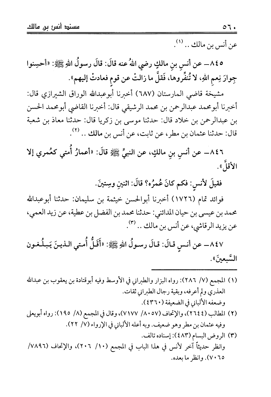 وانظر حديثاً آخر لأنس في هذا الباب في المجمع (10/ 206)، والإتحاف (7896/ 7065). وانظر ما بعده.