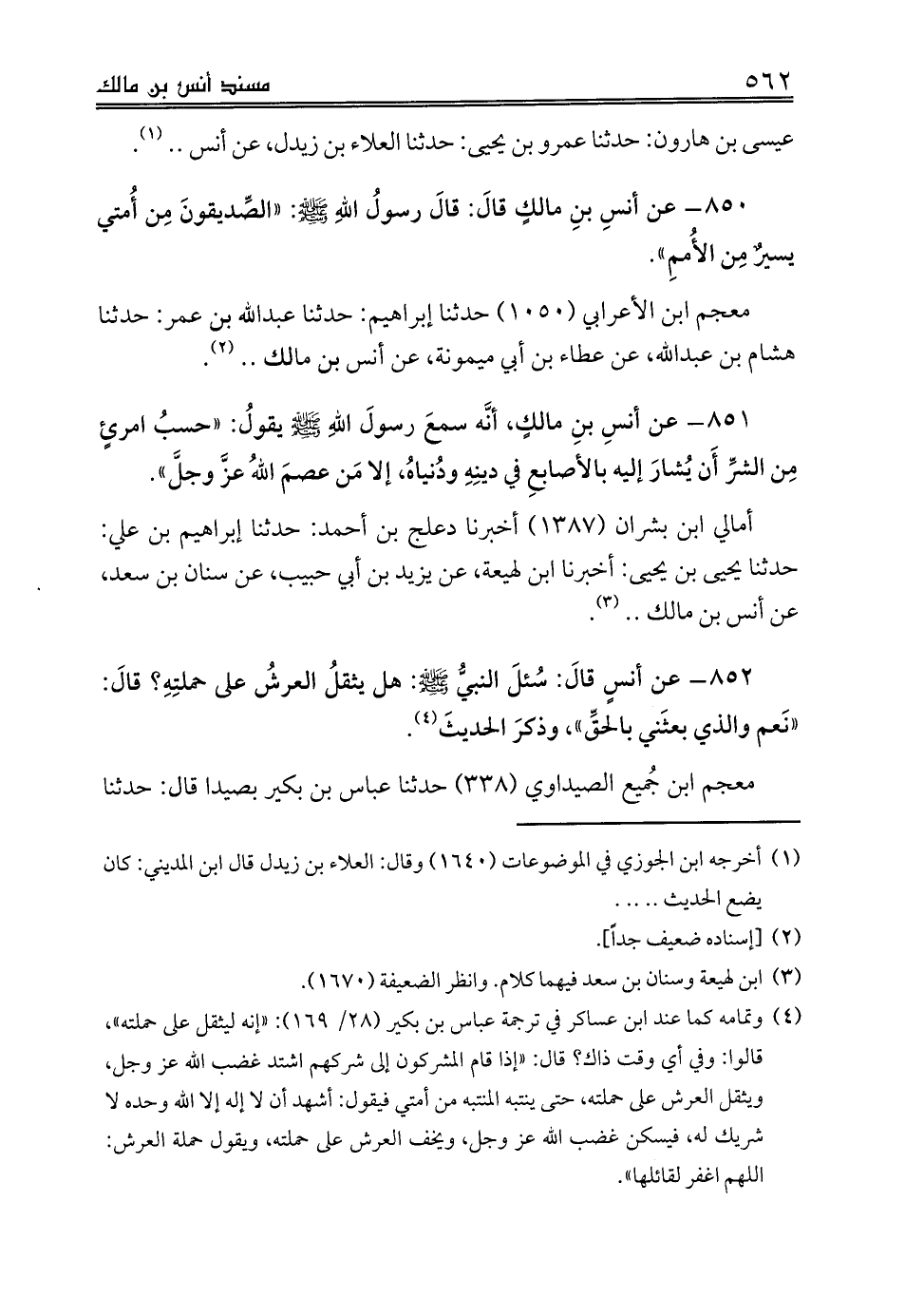 عيسى بن هارون: حدثنا عمرو بن يحيى: حدثنا العلاء بن زيدل، عن أنس .. (¬1).