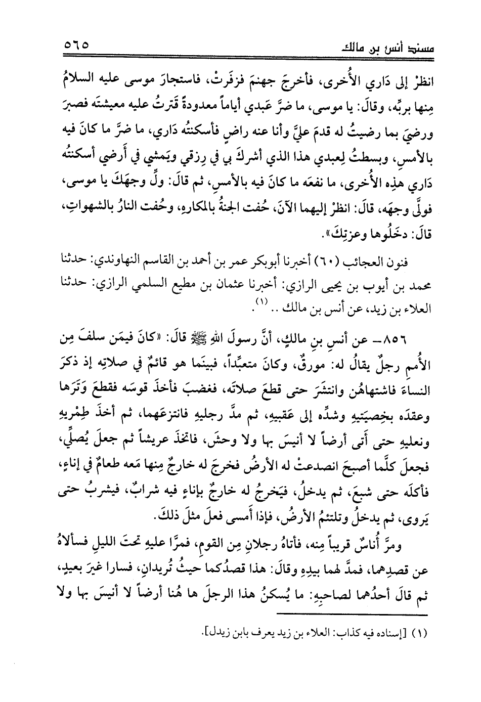 فنون العجائب (60) أخبرنا أبوبكر عمر بن أحمد بن القاسم النهاوندي: حدثنا محمد بن أيوب بن يحيى الرازي: أخبرنا عثمان بن مطيع السلمي الرازي: حدثنا العلاء بن زيد، عن أنس بن مالك .. (¬1).