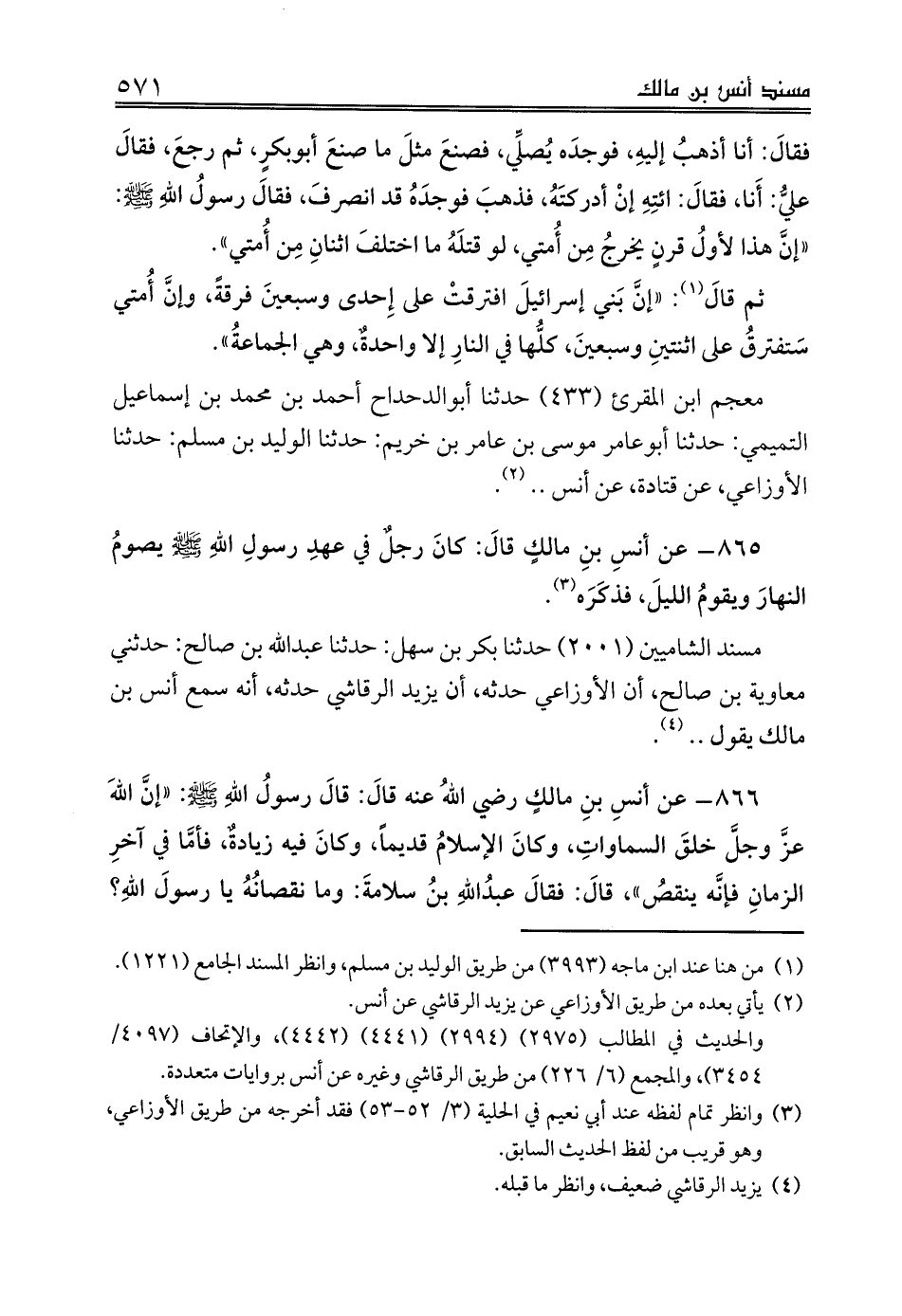 865 - عن أنسِ بنِ مالكٍ قالَ: كانَ رجلٌ في عهدِ رسولِ اللهِ صلى الله عليه وسلم يصومُ النهارَ ويقومُ الليلَ، فذكَرَه (¬3).