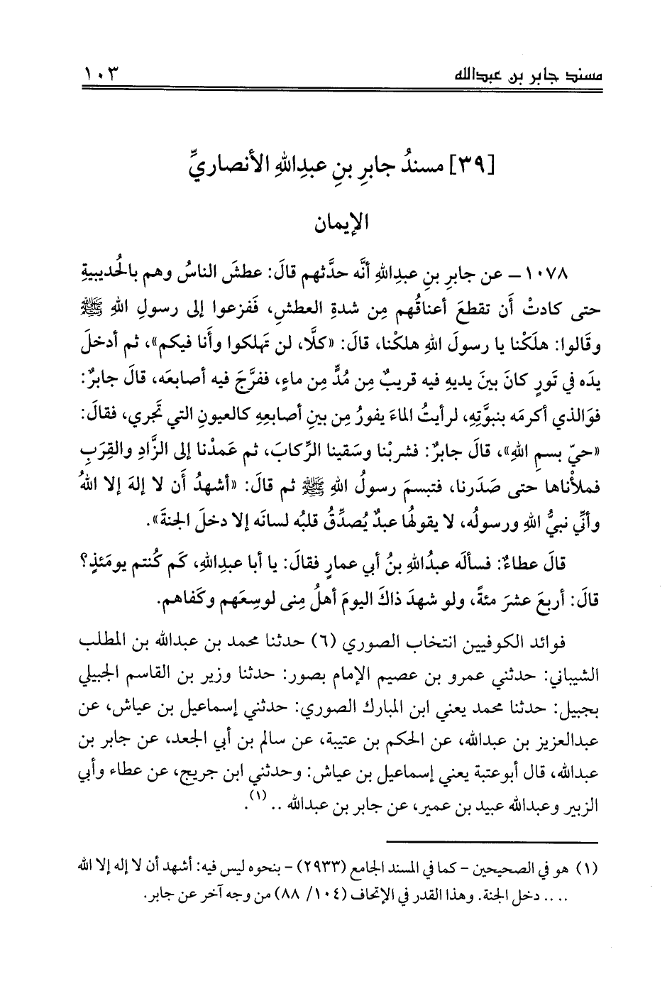 [39] مسندُ جابرِ بنِ عبدِاللهِ الأنصاريِّ