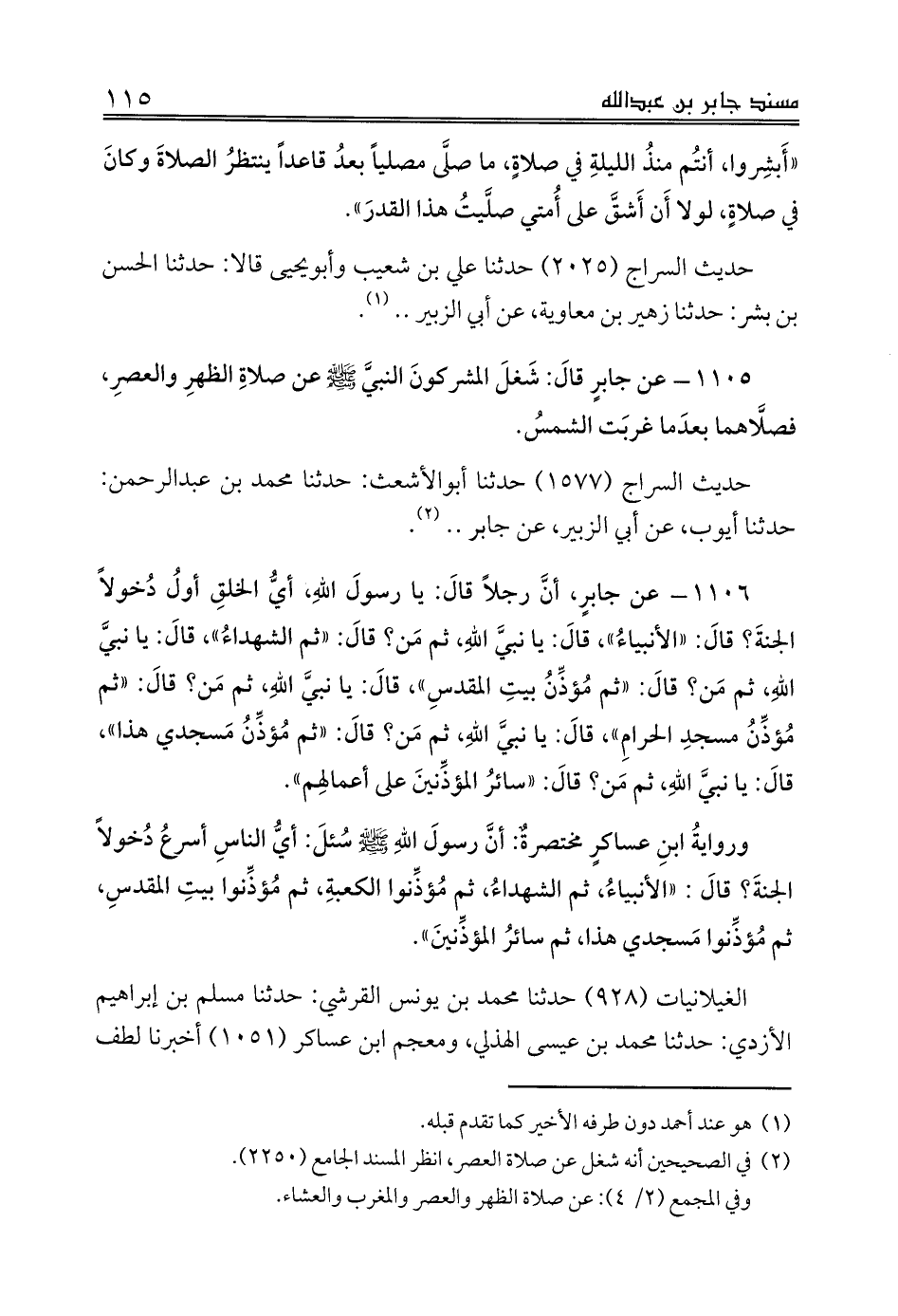 حديث السراج (2025) حدثنا علي بن شعيب وأبويحيى قالا: حدثنا الحسن بن بشر: حدثنا زهير بن معاوية، عن أبي الزبير .. (¬1).