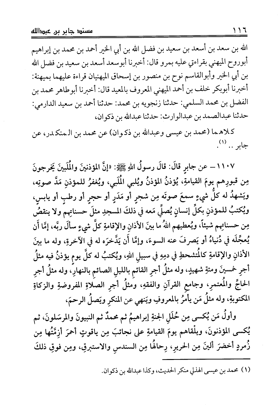 كلاهما (محمد بن عيسى وعبدالله بن ذكوان) عن محمد بن المنكدر، عن جابر .. (¬1).