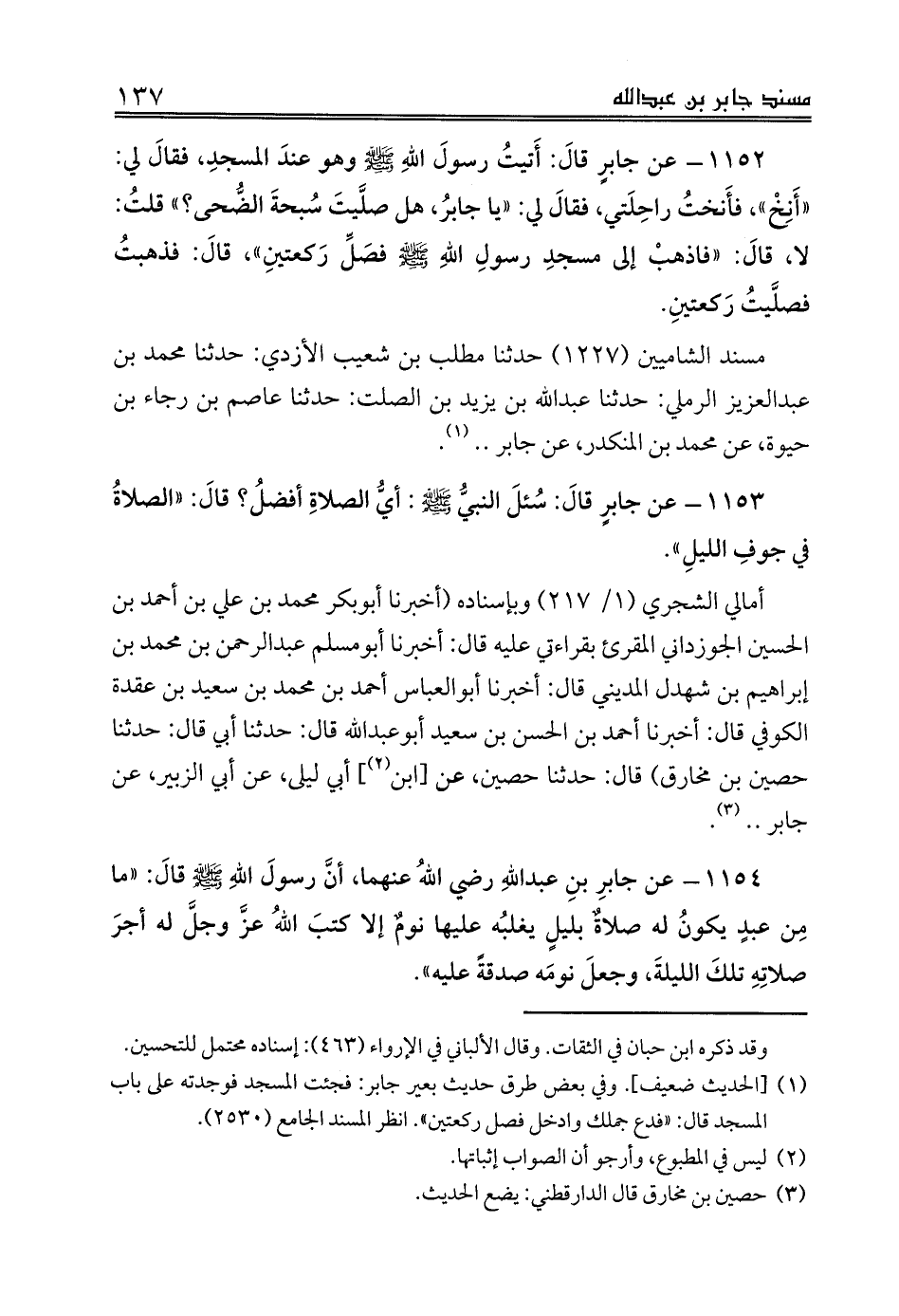 1153 - عن جابرٍ قالَ: سُئلَ النبيُّ صلى الله عليه وسلم: أيُّ الصلاةِ أفضلُ؟ قالَ: «الصلاةُ في جوفِ الليلِ».