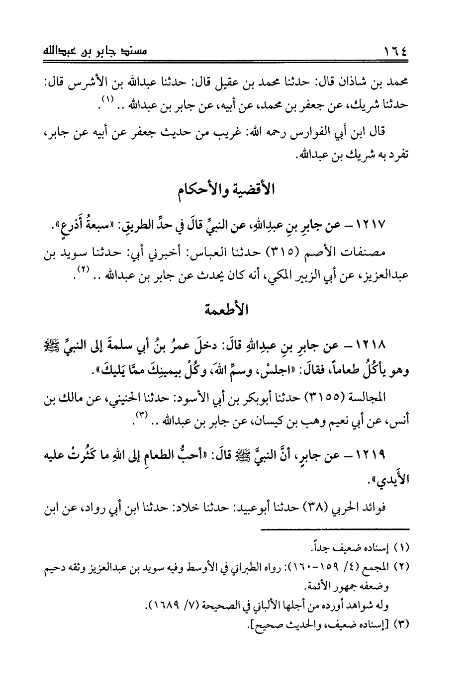 1217 - عن جابرِ بنِ عبدِاللهِ، عن النبيِّ قالَ في حدِّ الطريقِ: «سبعةُ أَذرعٍ».