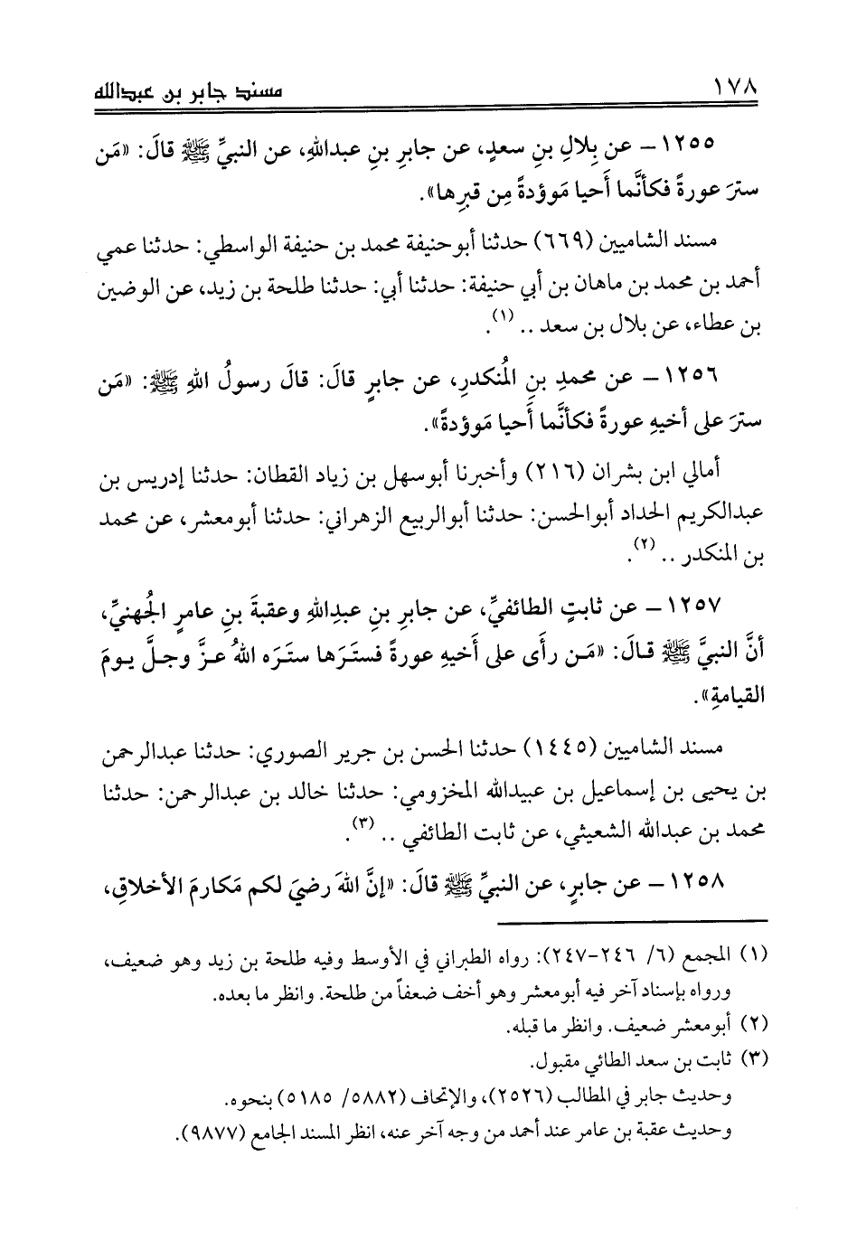 1256 - عن محمدِ بنِ المُنكدرِ، عن جابرٍ قالَ: قالَ رسولُ اللهِ صلى الله عليه وسلم: «مَن سترَ على أخيهِ عورةً فكأنَّما أَحيا مَوؤدةً».