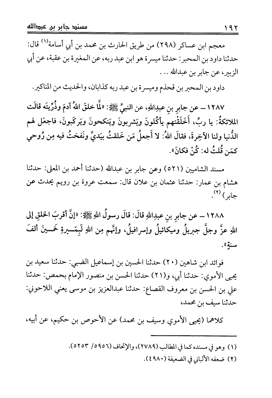 مسند الشاميين (521) وعن جابر بن عبدالله (حدثنا أحمد بن المعلى: حدثنا هشام بن عمار: حدثنا عثمان بن علان قال: سمعت عروة بن رويم يحدث عن جابر) (¬2).
