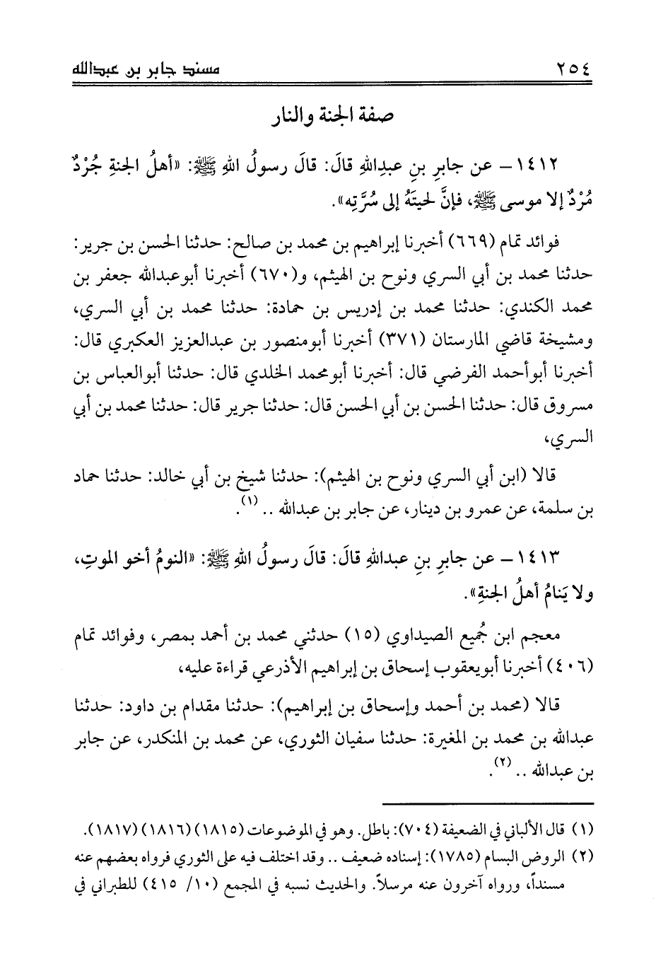 قالا (محمد بن أحمد وإسحاق بن إبراهيم): حدثنا مقدام بن داود: حدثنا عبدالله بن محمد بن المغيرة: حدثنا سفيان الثوري، عن محمد بن المنكدر، عن جابر بن عبدالله .. (¬2).
