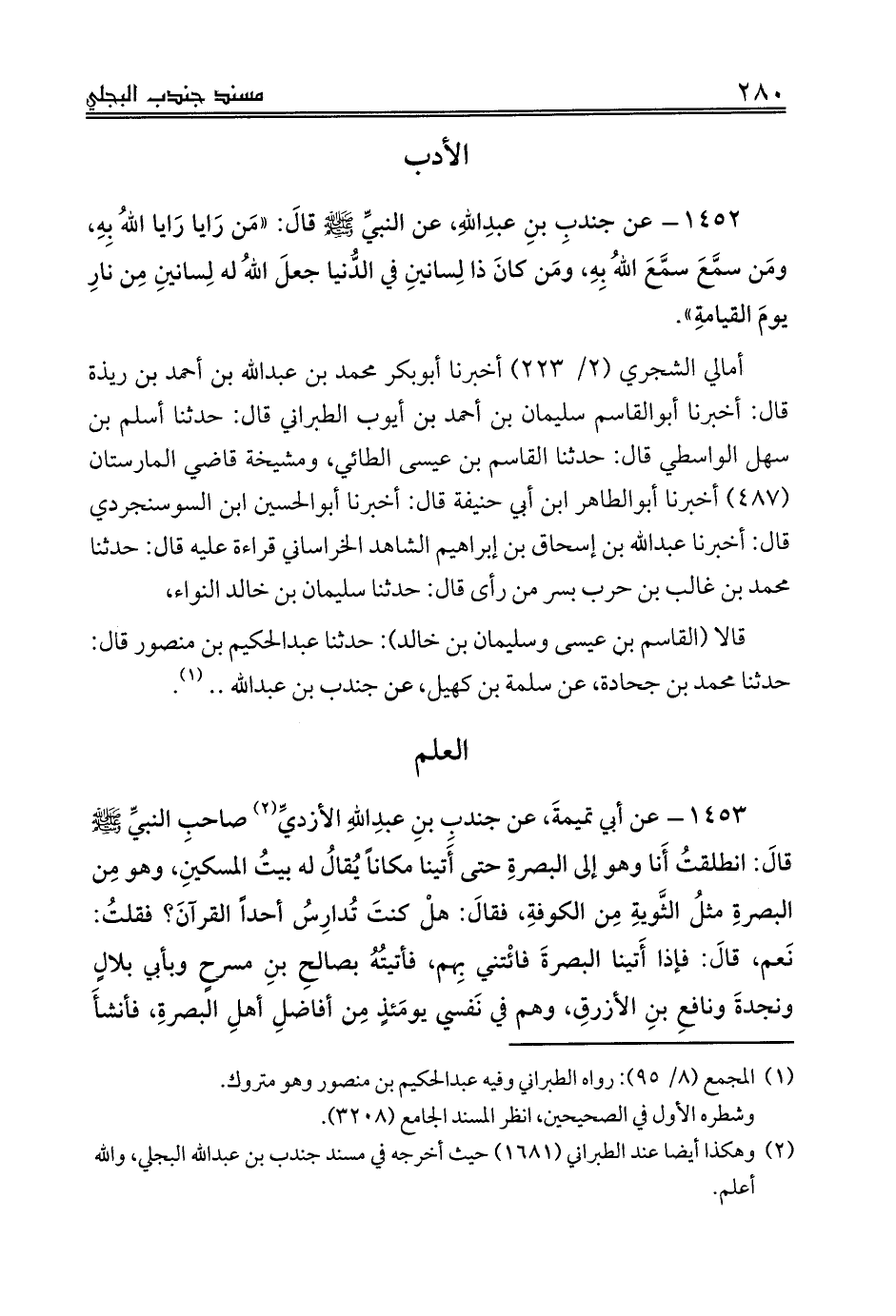 (¬2) وهكذا أيضا عند الطبراني (1681) حيث أخرجه في مسند جندب بن عبدالله البجلي، والله أعلم.