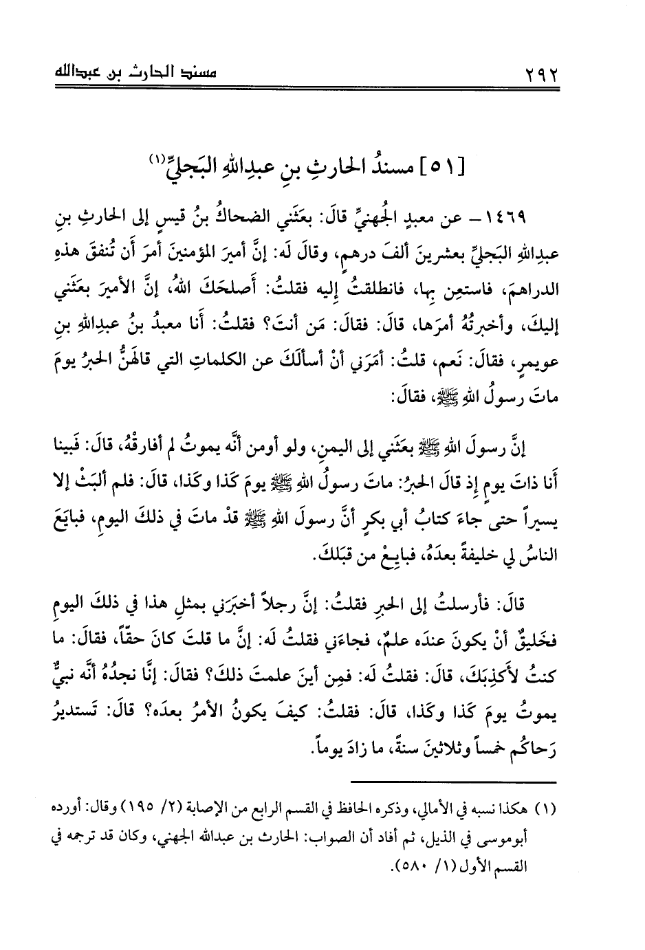 [51] مسندُ الحارثِ بنِ عبدِاللهِ البَجليِّ (¬1)