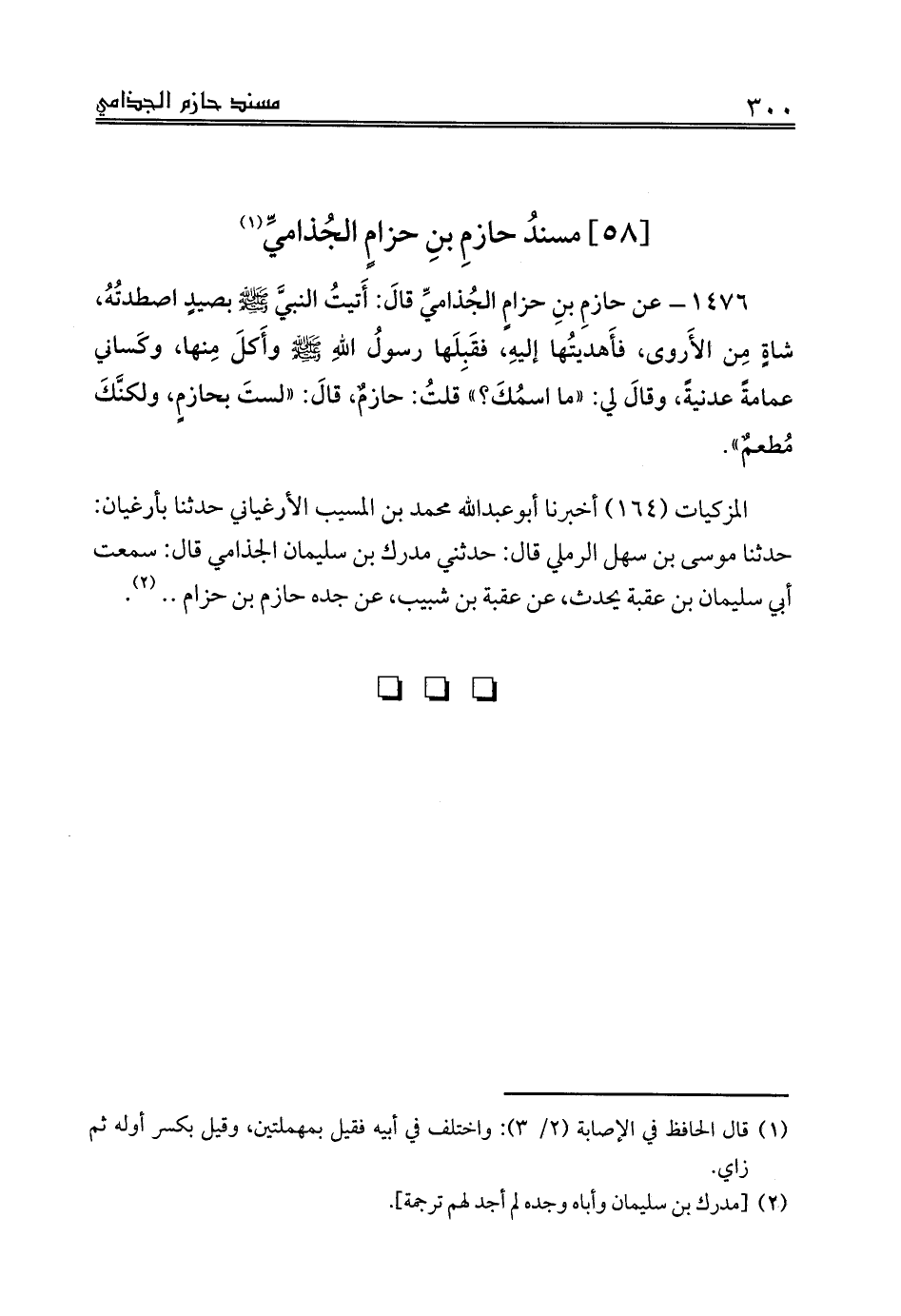 [58] مسندُ حازمِ بنِ حزامٍ الجُذاميِّ (¬1)